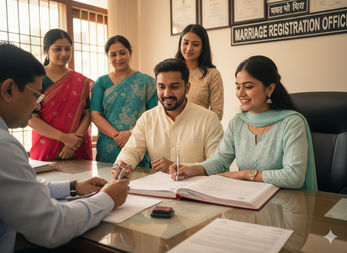 Our Marriage Registration Service ensures that your marriage is not only performed with proper Vedic rituals but also legally documented according to government regulations. We assist couples through the complete process—from solemnization of marriage to official registration—making the entire experience smooth, fast, and stress-free.